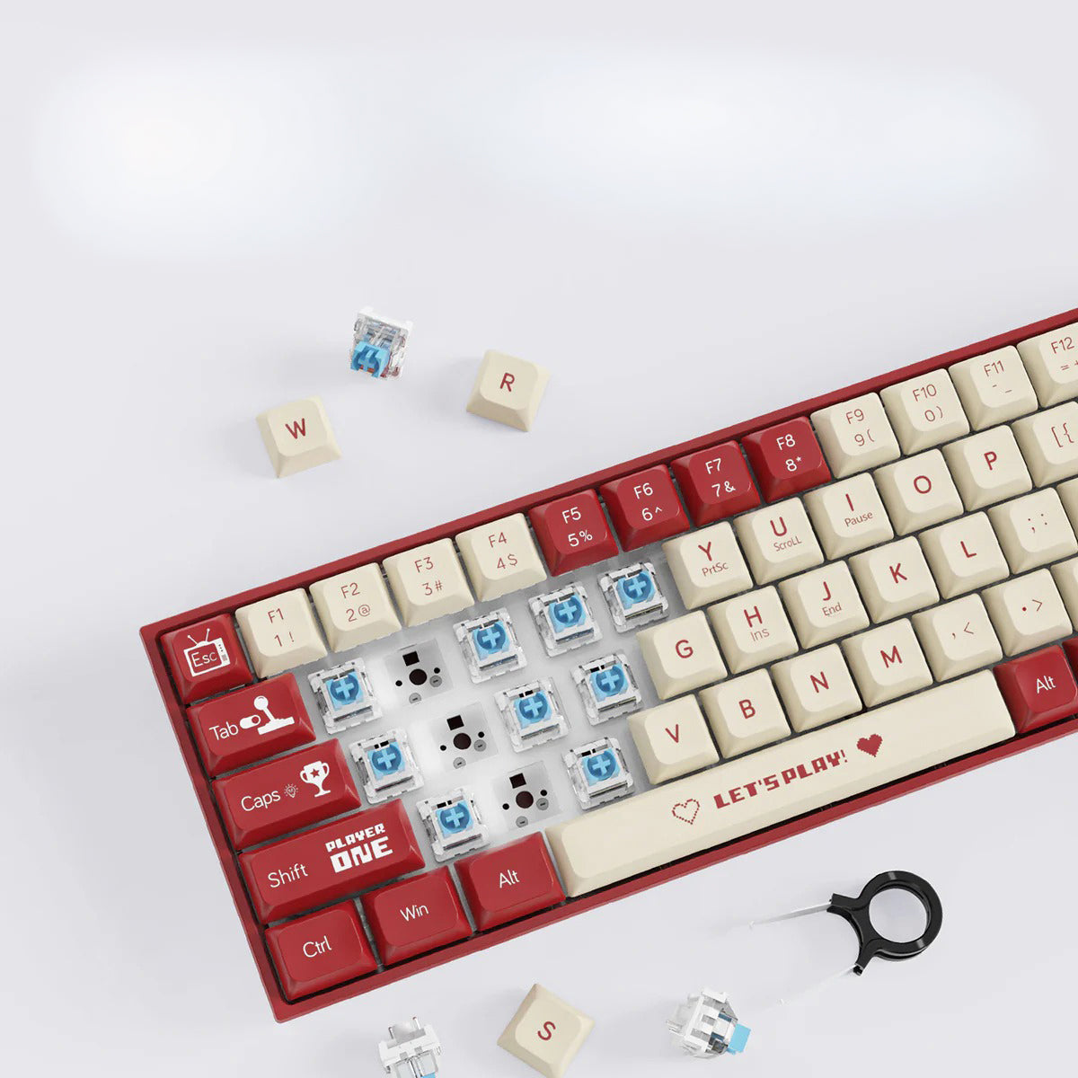 Permite cambiar los interruptores sin soldar, compatible con switches de 3 y 5 pines, ideal para personalizar la sensación de tecleo con opciones lineales, táctiles o silenciosas.
