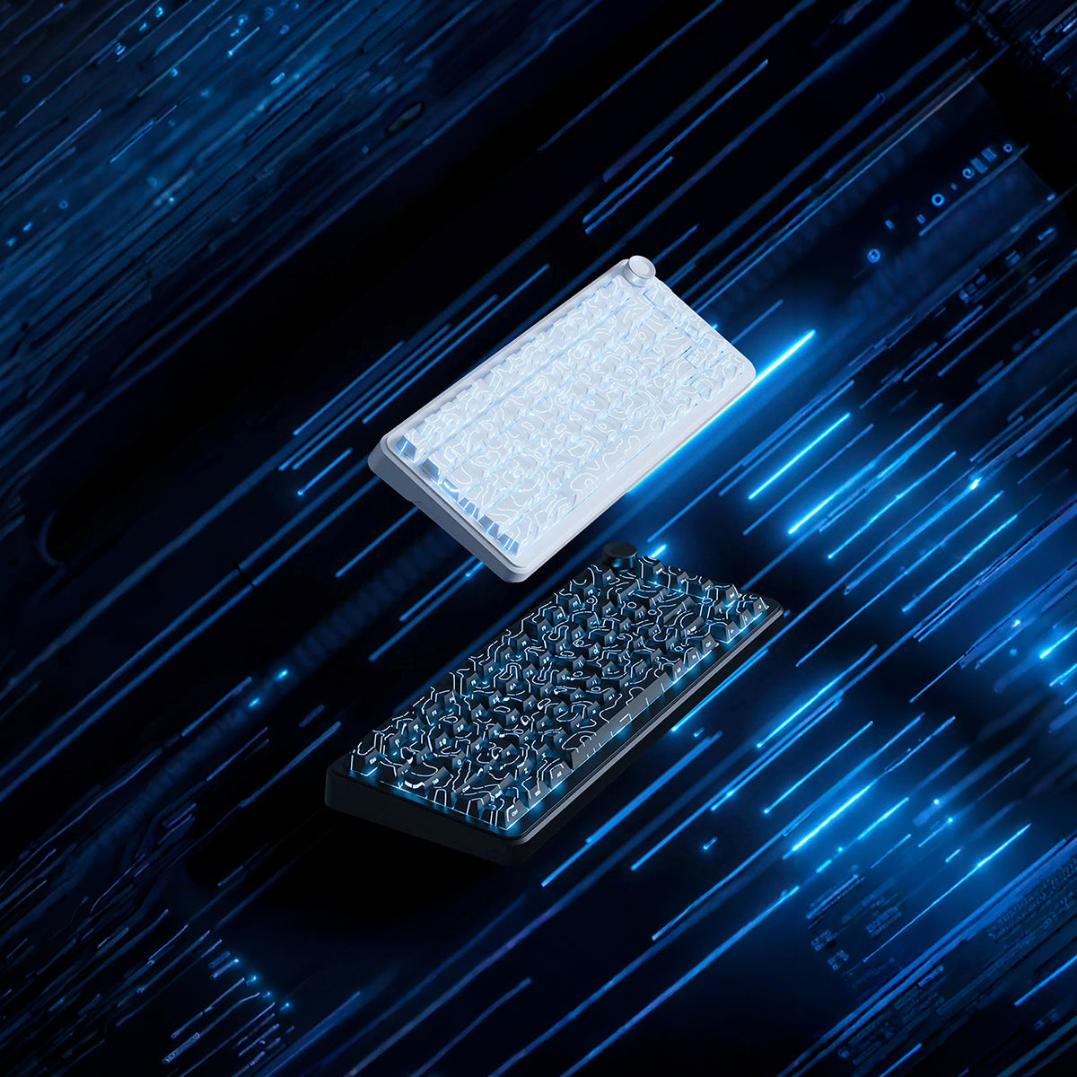 • Diseño compacto 75% (82 teclas + knob) que optimiza espacio sin perder funcionalidades clave.