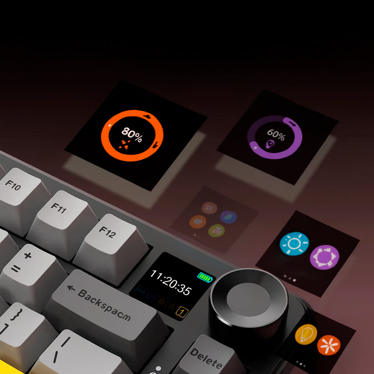 Todas las teclas son hot‐swappable (permite cambiar interruptores sin soldar) y conta con estructura tipo “gasket mount” o junta amortiguadora, múltiples capas de amortiguación para reducir ruido y mejorar la sensación al teclear.
