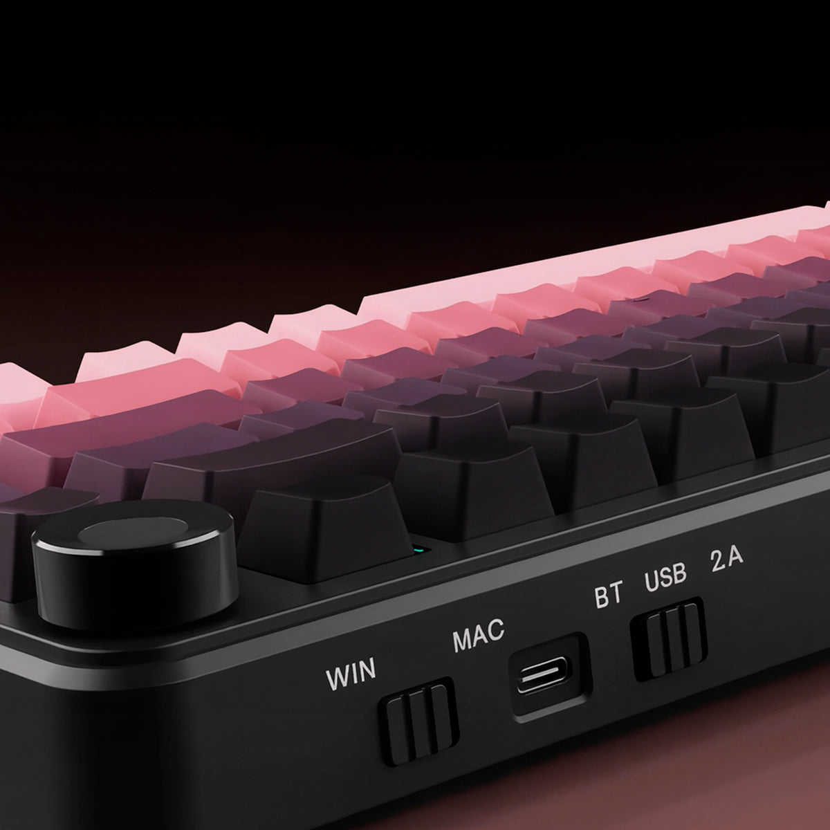 Este teclado permite cambiar fácilmente entre modo cableado (USB-C), inalámbrico de baja latencia 2,4 GHz y Bluetooth 5.x para hasta múltiples dispositivos.